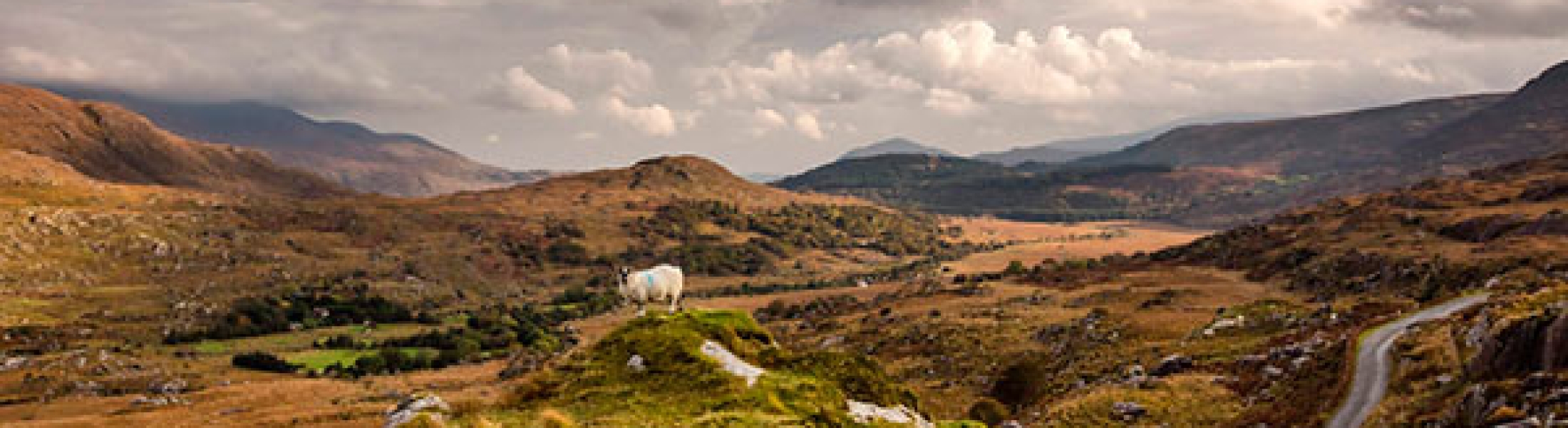 The route of the Kerry Way shadows the Ring of Kerry, which takes you right around the Iveragh Peninsula in County Kerry. Walkers usually follow the route anti-clockwise, heading across the lower slopes of the McGillycuddy Reeks and skirting the shore of the Upper Lake, one of the famous Lakes of Killarney. As you follow the route, you will traverse every kind of terrain, from modern tarred roads to the wilder paths of the mountainy landscape. This is a very different approach to completing the Ring of Kerry, with the signposted trail linking national park tracks and abandoned coach roads and mass paths.